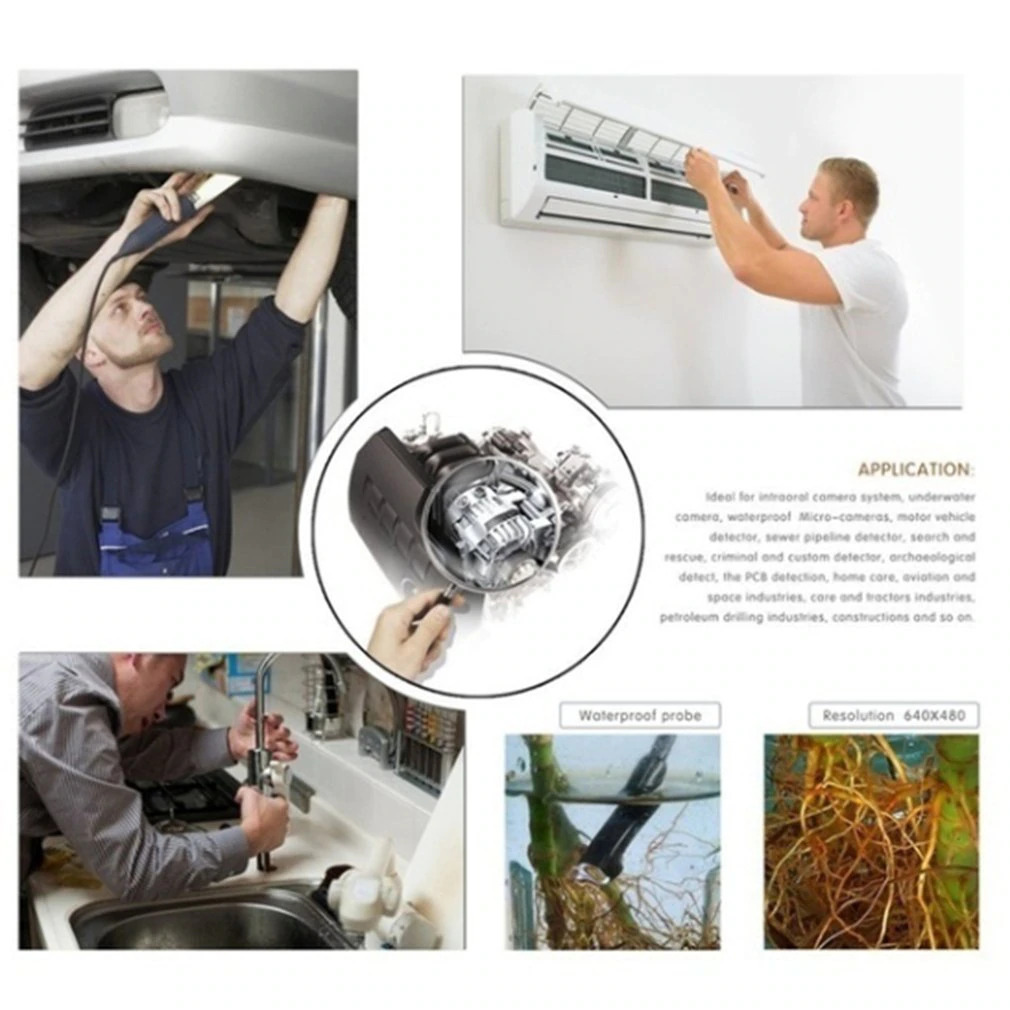 Camera industrială borescop cu sondă reglabilă are rezoluție HD și grad de impermeabilitate IP67. Poate fi utilizată pentru inspecția conductelor, reparațiile auto și întreținerea vizuală.